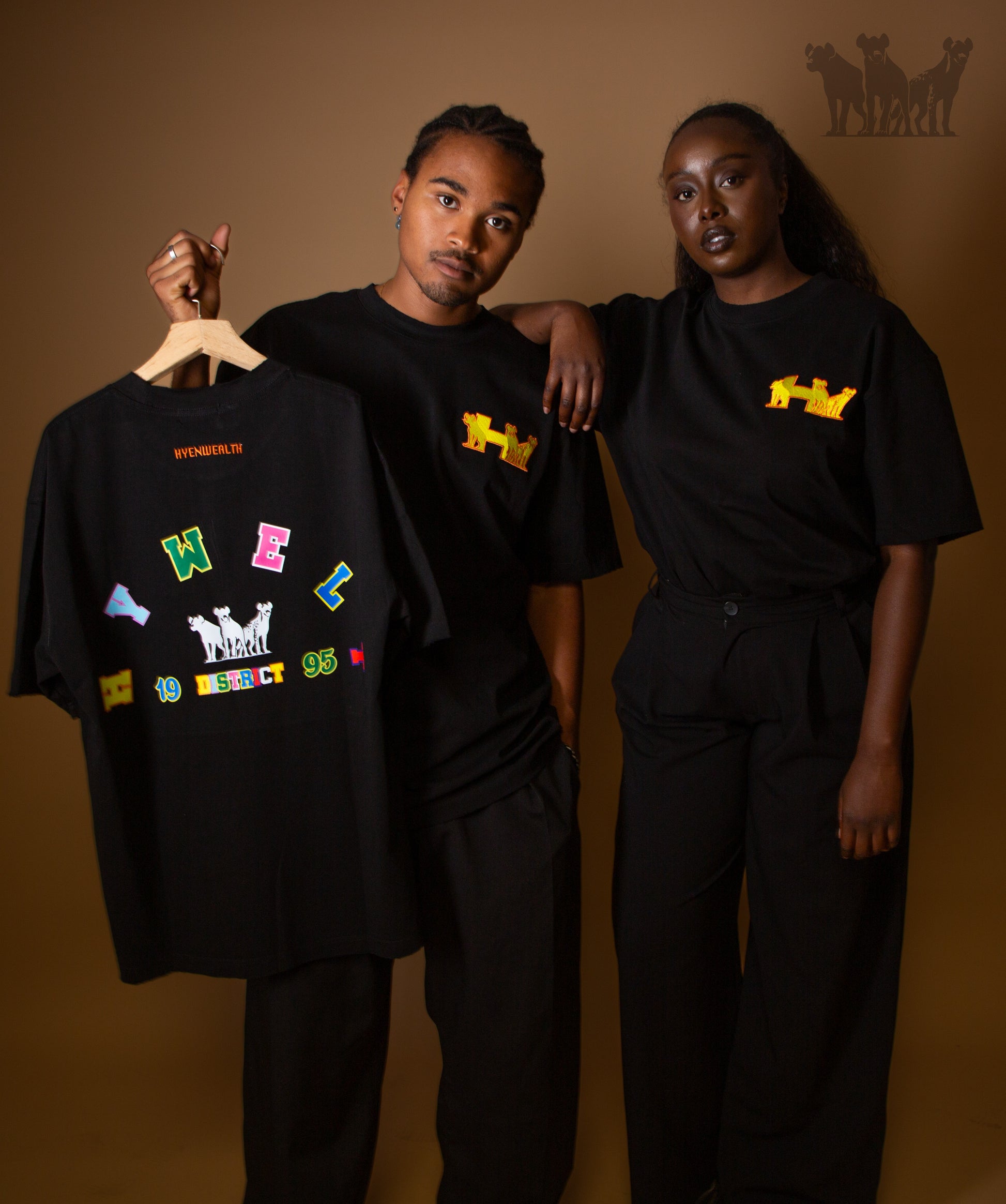 - Visuel "SQUAD" signification : Répartition des lettres "H.Y.W.E.L.T" en arc de cercle avec le logo HyenWealth au centre. En dessous de celui-ci, inscription "District". De part et d'autre, l'année "1995" scindée en 2 parties. Ce visuel a une inspiration des clubs universitaires américains, reconnaissable par leurs visuels iconiques dans le monde du textile. HyenWealth ayant pour identité : "Avoir un collectif pour atteindre la réussite", elle ne pouvait que commencer ses premiers produit par un clin d'oeil sur le thème de la collectivité. C'est de toute évidence que le nom "SQUAD" était le plus légitime pour le choix de la collection.
